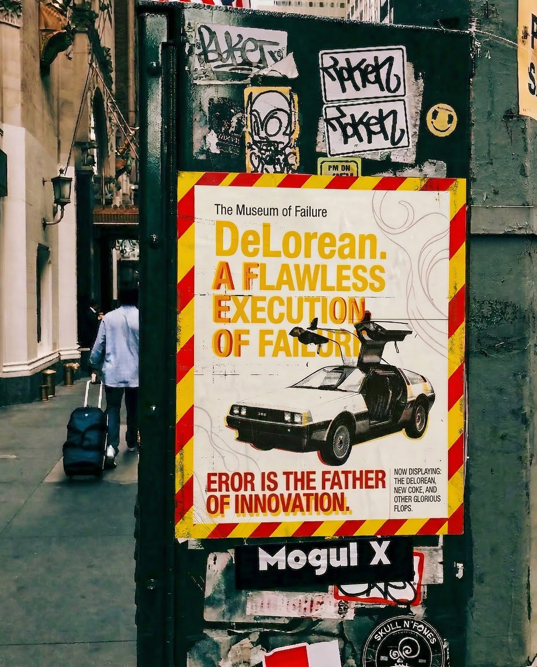 I designed a guerilla out-of-home poster campaign that embraces the beauty of the mistake. Using hazard-tape borders, bold industrial typography, and an intentionally flawed manifesto ("EROR IS THE FATHER OF INNOVATION"), the brand voice leans completely into self-aware irony.